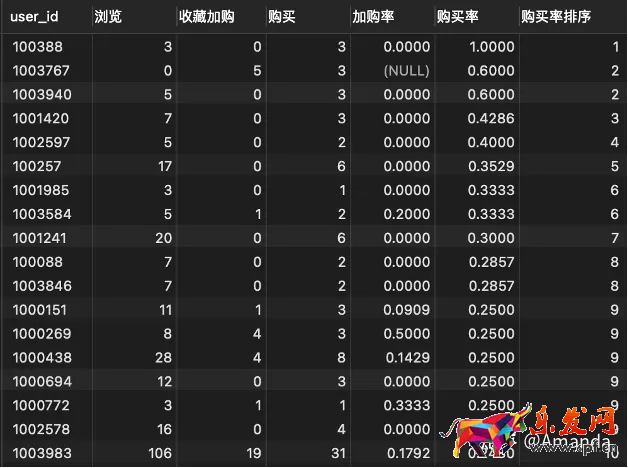 1. 高購買率用戶平均瀏覽數33遠小于低購買率用戶平均瀏覽數185.高購買率用戶的瀏覽更具有目的性。