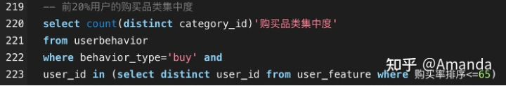 為求得20%的客戶,直接求得最后一名購買率,在其基礎上*20%即可,查詢語句如下: