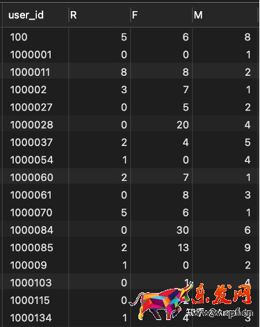 (1)按以上定義,計算出每個客戶的R、F、M值: