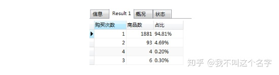 本次分析的商品共有64440中,用戶購買的商品共有16743種,購買數量非常集中的商品比較少;在本次統計的數據中,只購買一次的商品有56154種,占用戶購買商品數的79.26%,說明商品售賣主要依靠長尾商品的累積效應,而非爆款商品的帶動。