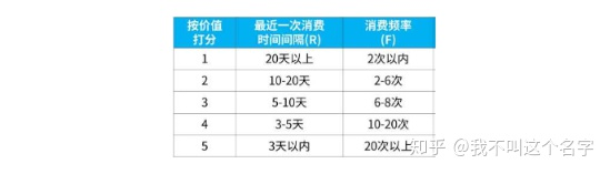 根據上面計算得到的用戶R、F值,定義一個打分規則,如下圖: