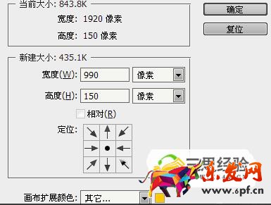 02、把你做好的店招先存成JPG格式,先不去管它,然后再把源文件裁剪成990像素*150像素大小。