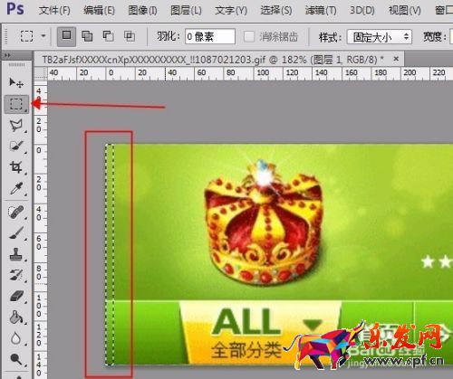 1 用PS打開之前準備好的店招圖片,用矩形選框工具在兩側的邊取1到5像素,再按快捷鍵Ctrl+C復制。
