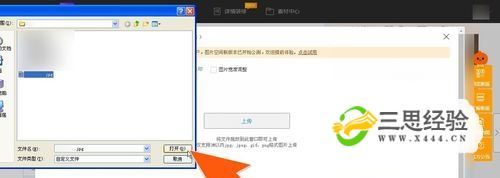 04移上去后,就會顯示”替換圖片“的字樣,點擊它;在出現在頁面上,點“上傳”,再在窗中選好做為手機店鋪招牌的圖片,點“打開”。