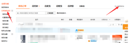 “訂單回收站”按鍵在‘全部訂單’內容的右側,或者你可以先找到標題欄,如單價、數量等信息,在該信息的右上方,建議可以仔細查找一下。