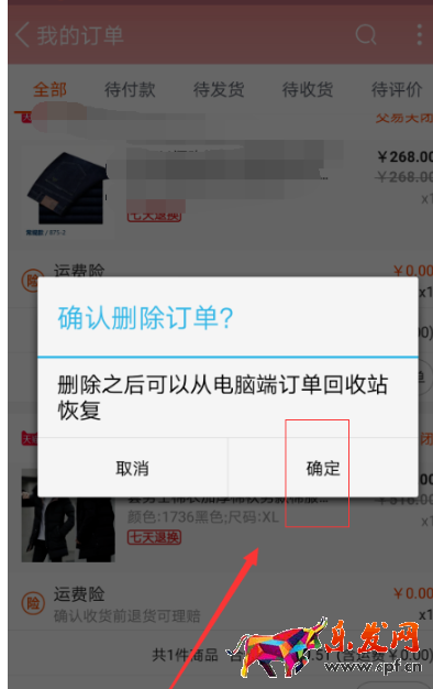 6、根據系統的提示,永久刪除訂單,點擊上角的那個垃圾箱即可永久刪除,刪除的訂單不可恢復。這個時候需要謹慎操作,如果確實不想看到就可以刪除(售后維權過的訂單無法刪除)。