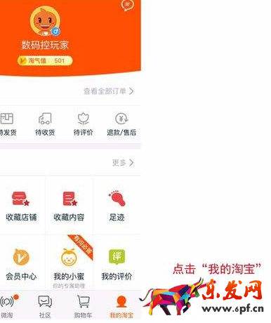 2、進入到手機淘寶主頁面之后,我們點擊右下角的我的淘寶。