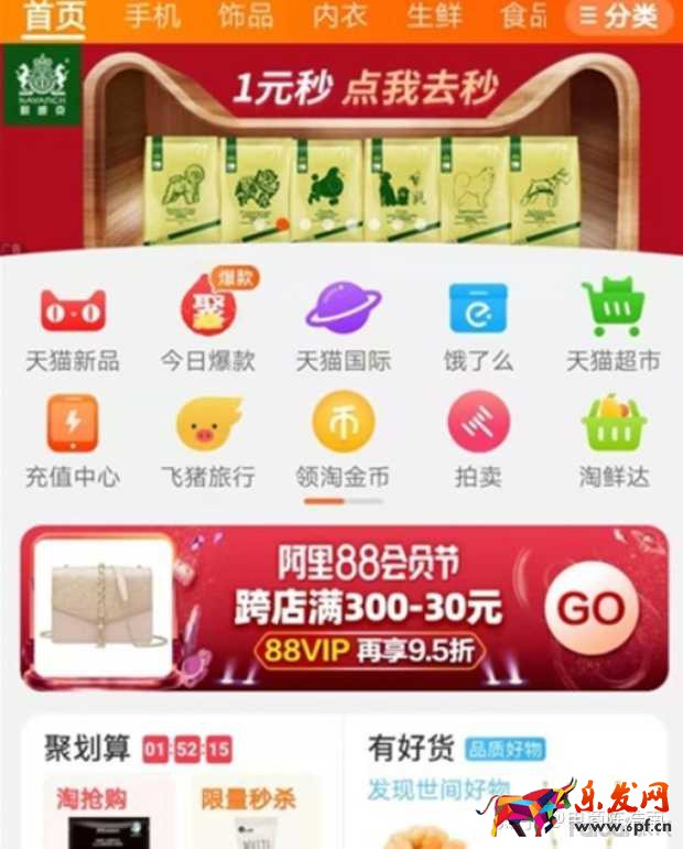分類版塊與PC端的思路是一致的,把客戶經常會點到的頻道列出來。比如天貓、聚劃算這些分頻道,也有天天特價、淘搶購這些子活動。