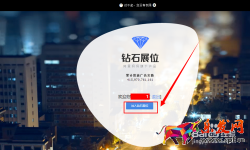 3 點擊過后彈出來一個對話框,就是歡迎界面,然后點擊“加入鉆石展位”