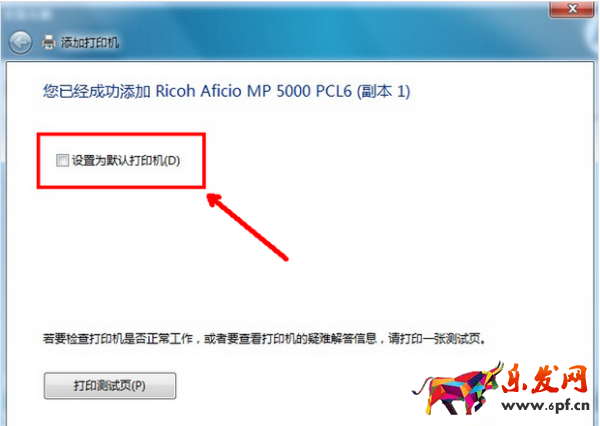 7.在“設(shè)置成默認(rèn)打印機”后,整個網(wǎng)絡(luò)打印機就設(shè)置連接安裝成功了,你現(xiàn)在就可以進行打印測試了(如下圖):