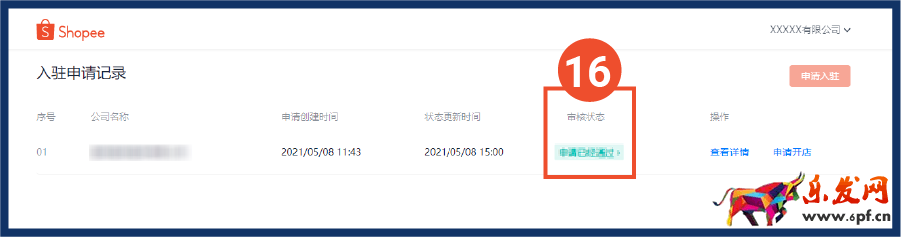 第十六步,隨時留意郵箱通知或自主到入駐記錄中查看,當審核通過時,狀態(tài)會更新