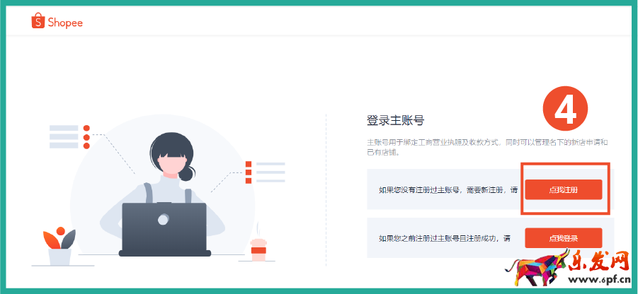 首次入駐Shopee的賣家,請點擊“點我注冊”;若已經(jīng)注冊過主賬號且注冊成功,則直接點擊“點我綁定”繼續(xù)提交資料即可~