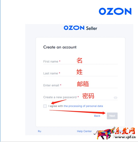 頁(yè)面進(jìn)行注 Торговая площадка頁(yè)面進(jìn)行注冊(cè)。在填寫(xiě)主要信息后, 選擇允許個(gè)人信息條款并點(diǎn)擊Next進(jìn)入下一環(huán)節(jié)