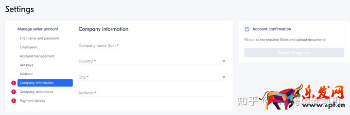 進入店鋪后點擊右上角在個人中心設置 中填寫帶有感嘆號的字段,也就是公司信息、公司文檔、收款信息這三項。如果您沒有父稱,請用破折號“-”代替。