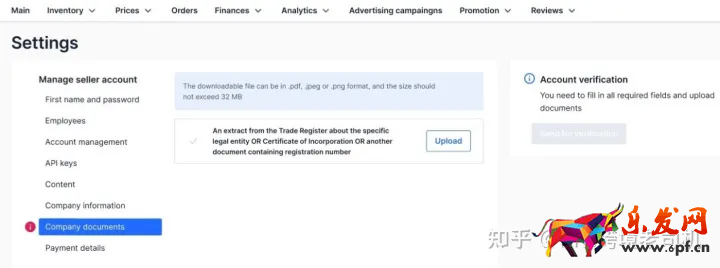 在“Company documents” (公司證件)欄目中,需要以PDF、JPEG或PNG格式上傳營業執照信息,需要上傳的是原始文件+英文翻譯件。每個文件大小不超過32M。