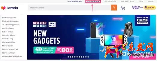 1.打開Lazada首頁(yè),點(diǎn)擊網(wǎng)站頂部“Sell on Lazada”