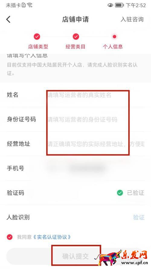 8 切換到個人信息的界面填寫信息后點擊確認提交按鈕等待審核通知。