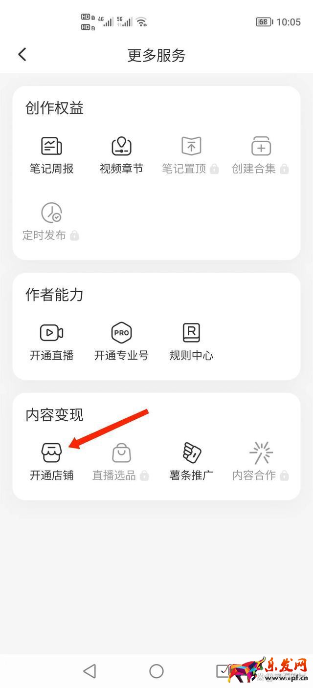 4、找到內容變現下的“開通店鋪”