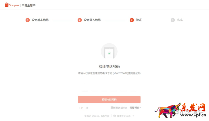 在主賬號下按照指引填寫入駐信息表單。完整提交后即可獲得無銷售權店鋪,便于賣家提前熟悉店鋪操作。系統會根據賣家申請材料中的特征,分配中文市場的店鋪,或英文市場的店鋪。此處需要驗證賣家留下的店鋪聯絡方式。
